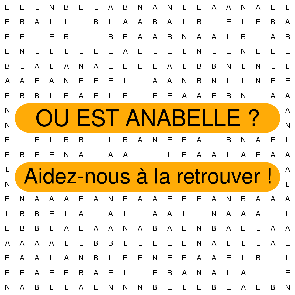 La grille ci-dessous contient une et une seule fois le mot ANABELLE. A vous de jouer !
