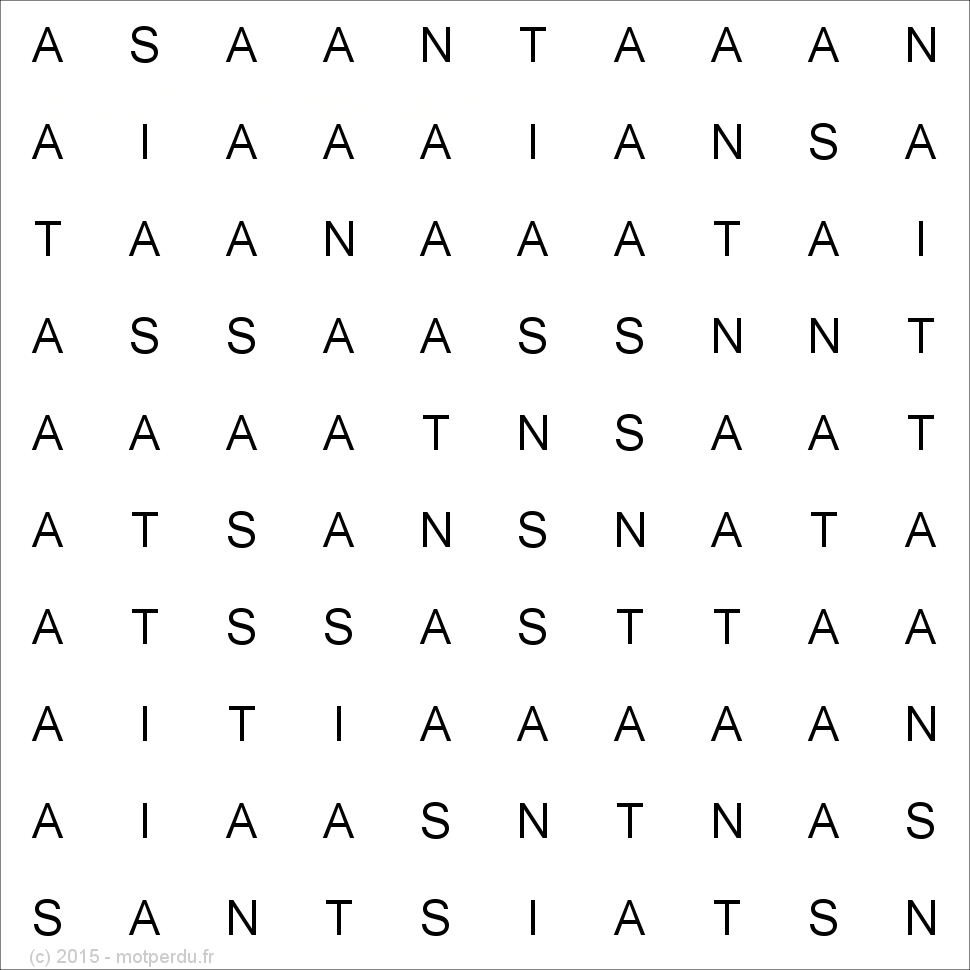 La grille ci-dessous contient une et une seule fois le mot ANASTASIA. A vous de jouer !