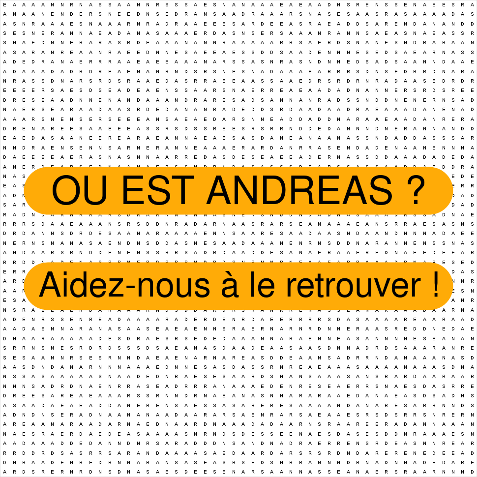 La grille ci-dessous contient une et une seule fois le mot ANDREAS. A vous de jouer !