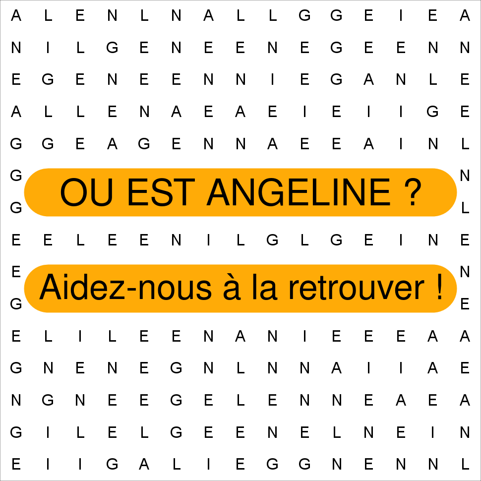 La grille ci-dessous contient une et une seule fois le mot ANGELINE. A vous de jouer !