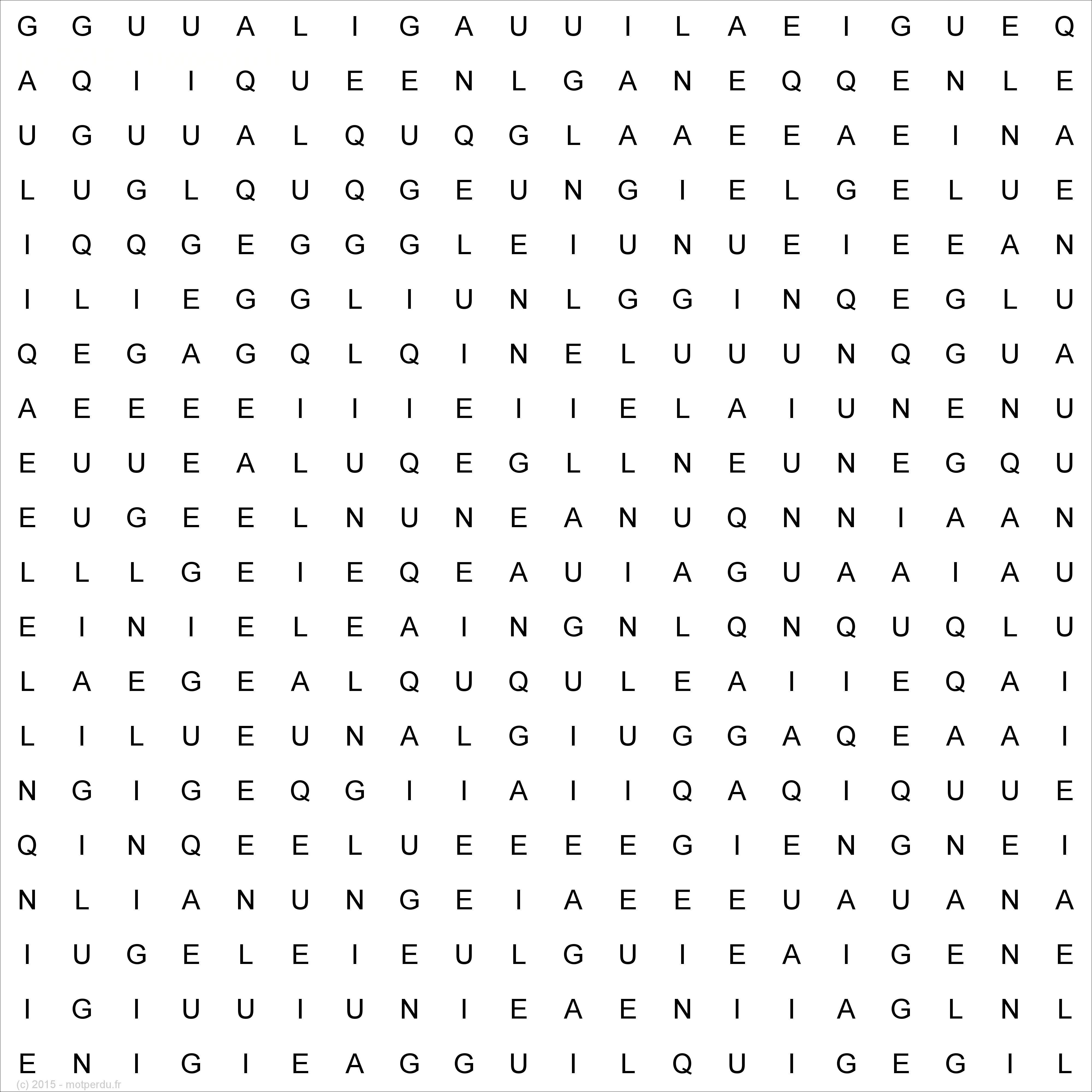 La grille ci-dessous contient une et une seule fois le mot ANGELIQUE. A vous de jouer !