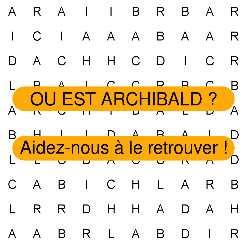 La grille de jeu "Où est ARCHIBALD ?" générée sur MotPerdu.fr est mise à disposition selon les termes de la licence Creative Commons Attribution 4.0 International.