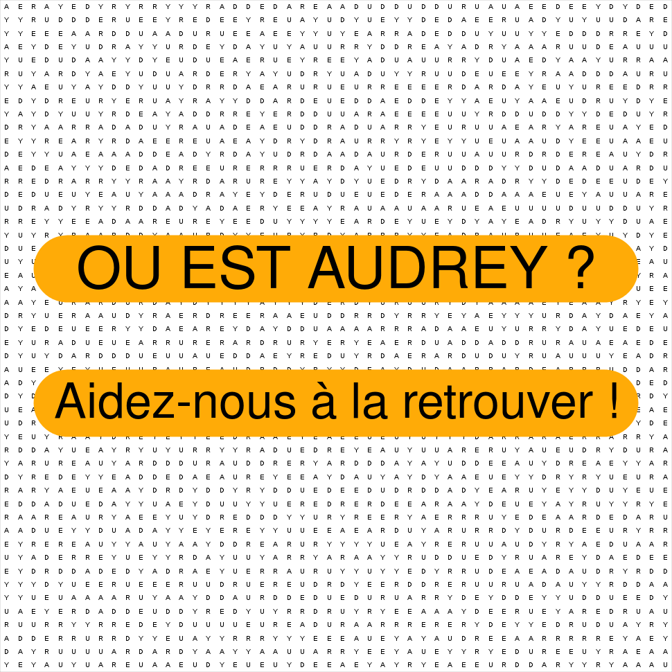 La grille ci-dessous contient une et une seule fois le mot AUDREY. A vous de jouer !