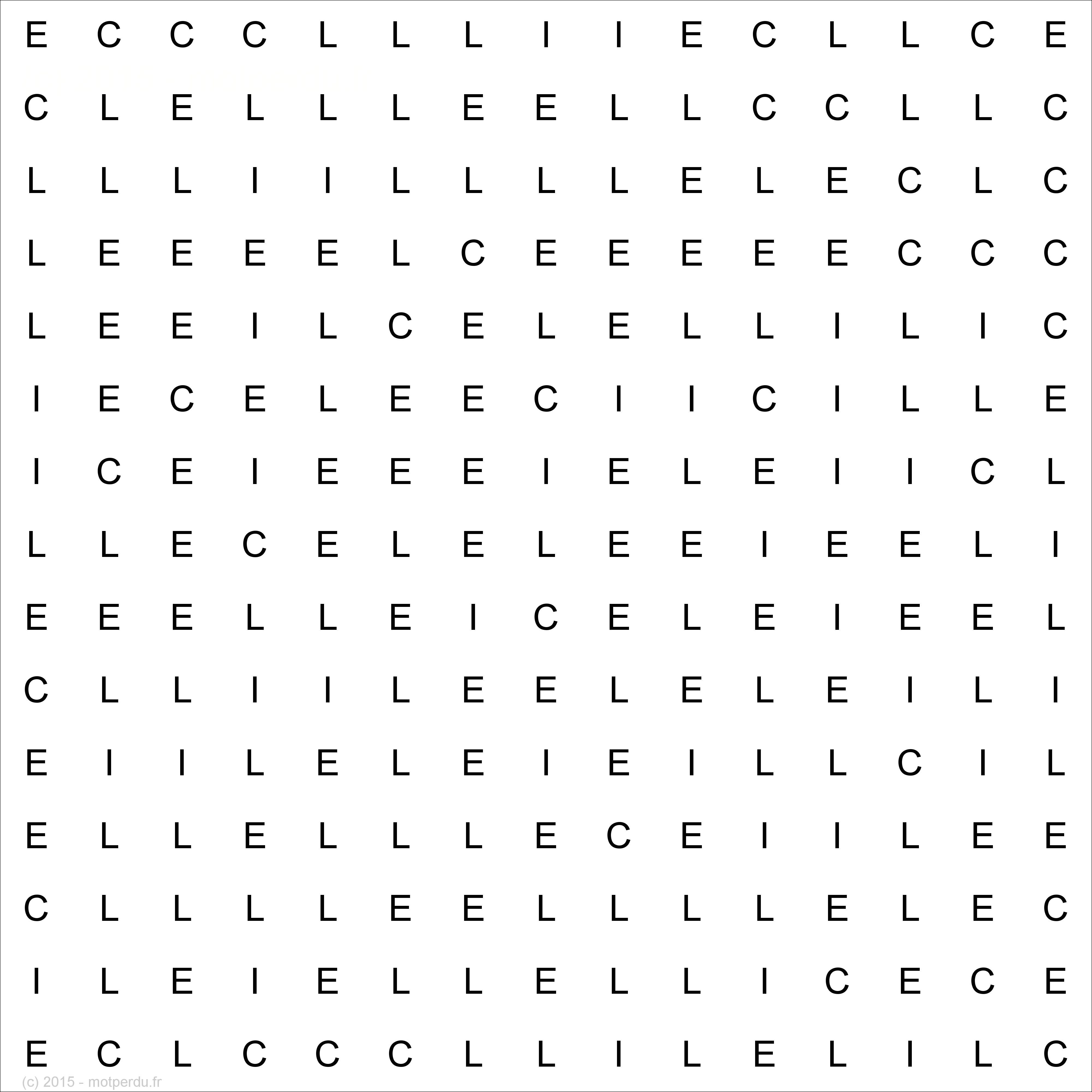 La grille ci-dessous contient une et une seule fois le mot CLELIE. A vous de jouer !