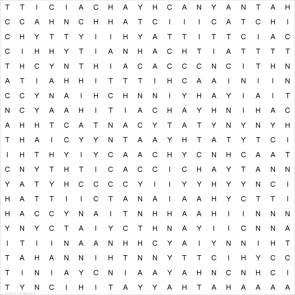 La grille ci-dessous contient une et une seule fois le mot CYNTHIA. A vous de jouer !