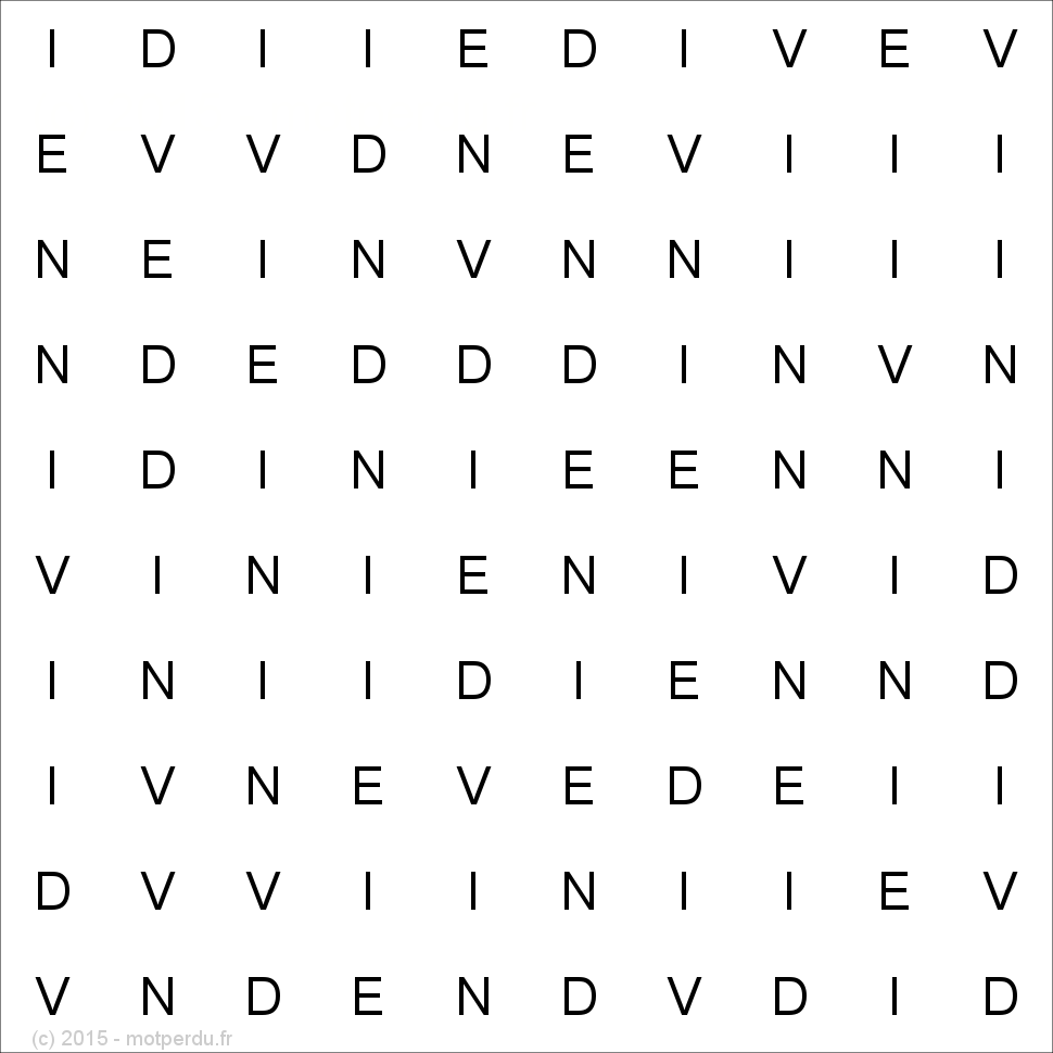 La grille ci-dessous contient une et une seule fois le mot DIVINE. A vous de jouer !