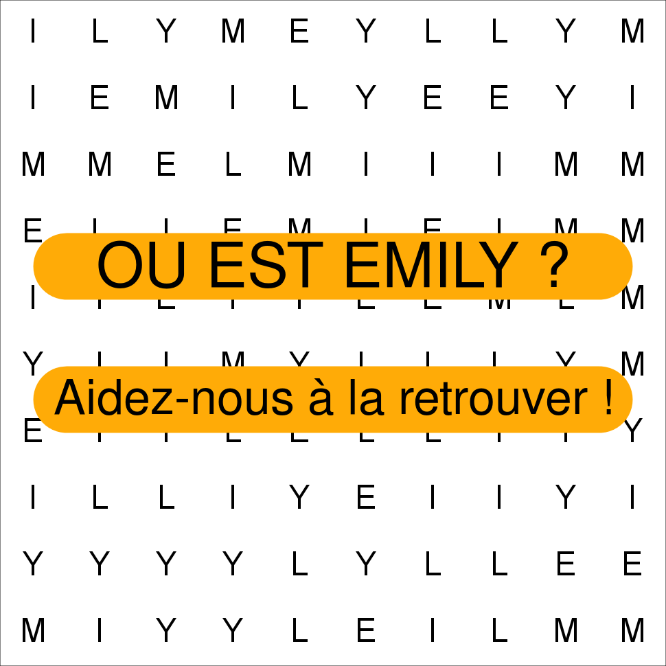 La grille de jeu "Où est EMILY ?" générée sur MotPerdu.fr est mise à disposition selon les termes de la licence Creative Commons Attribution 4.0 International.