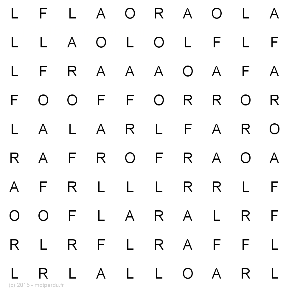 La grille ci-dessous contient une et une seule fois le mot FLORA. A vous de jouer !