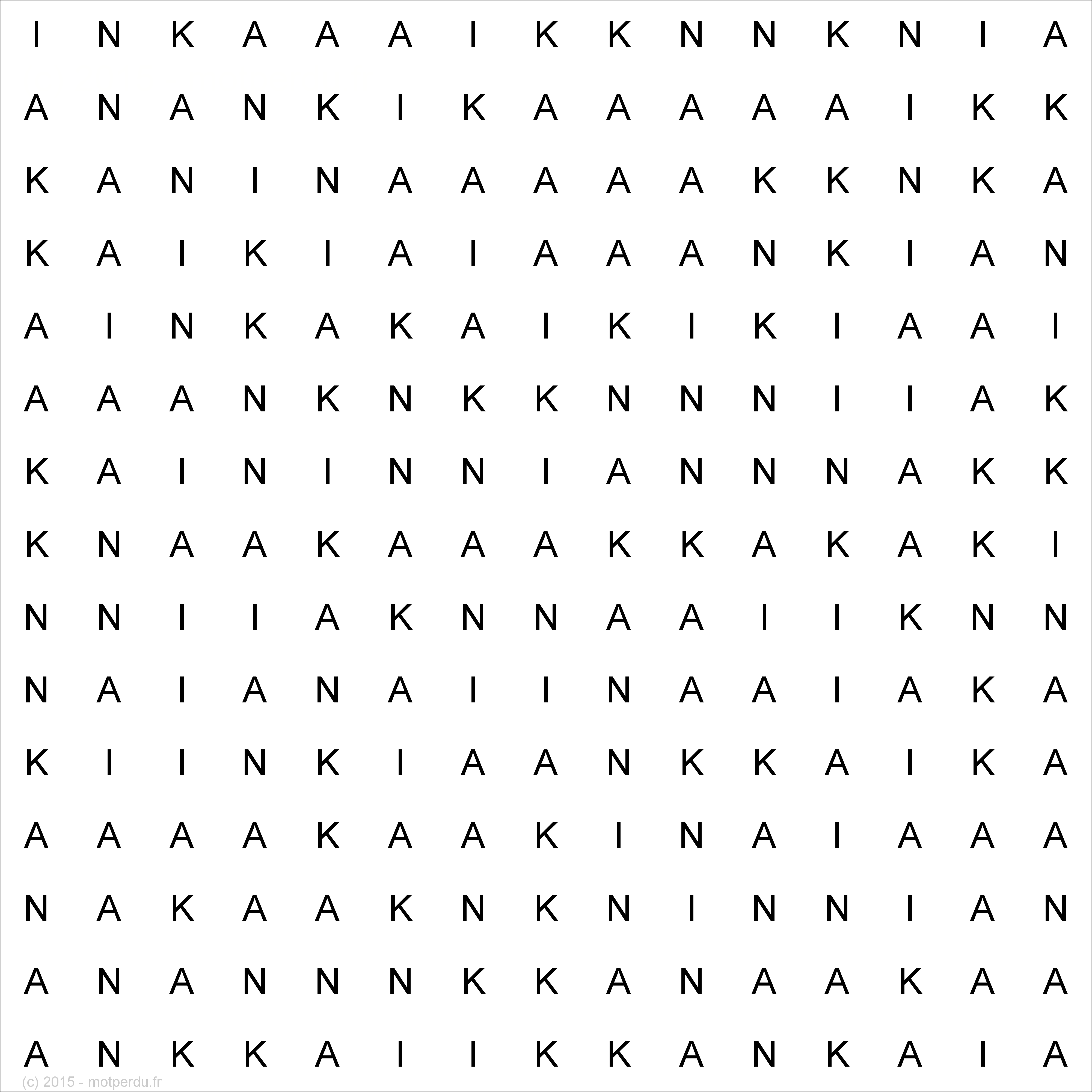 La grille ci-dessous contient une et une seule fois le mot KAINA. A vous de jouer !