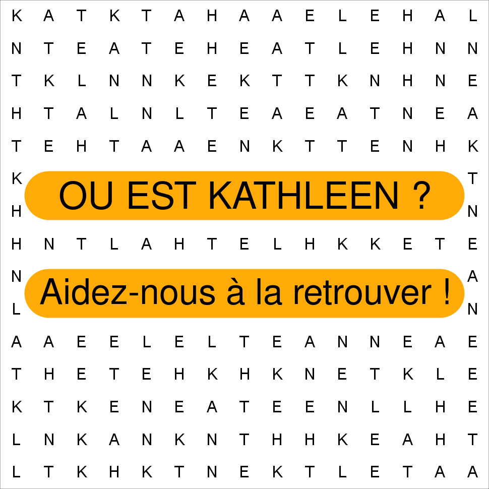 La grille ci-dessous contient une et une seule fois le mot KATHLEEN. A vous de jouer !
