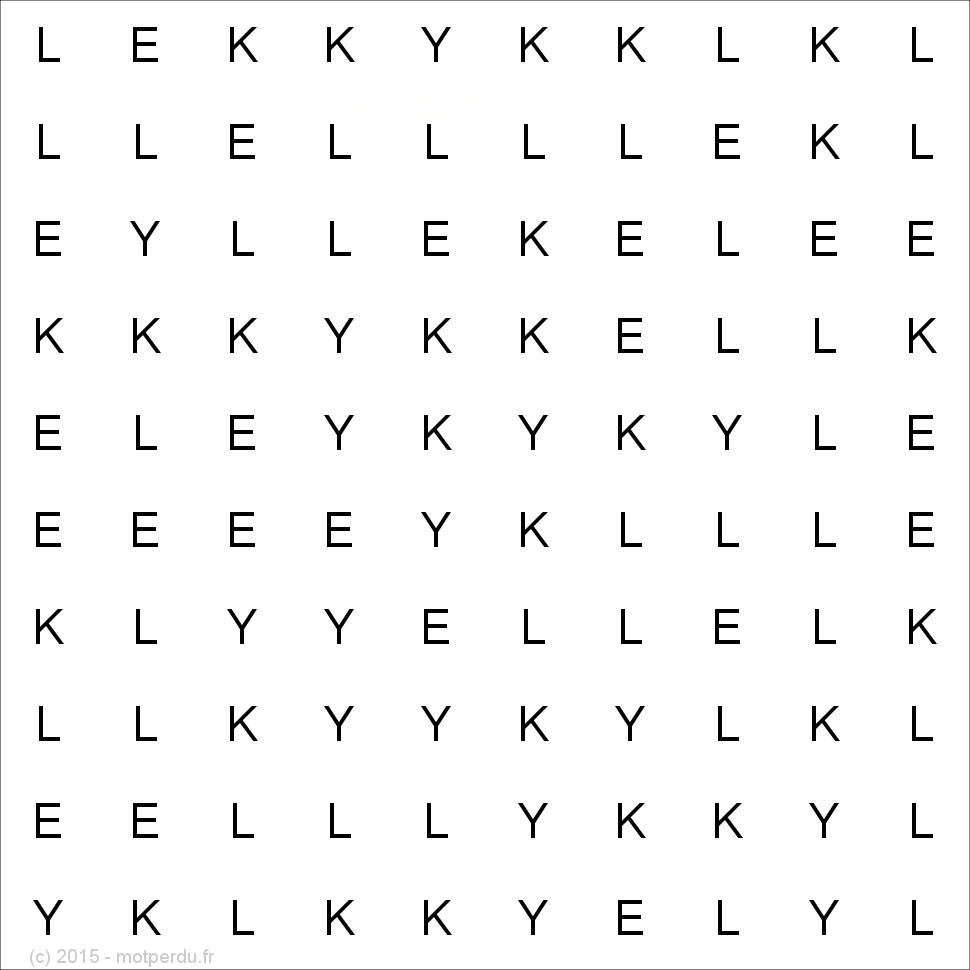 La grille ci-dessous contient une et une seule fois le mot KELLY. A vous de jouer !