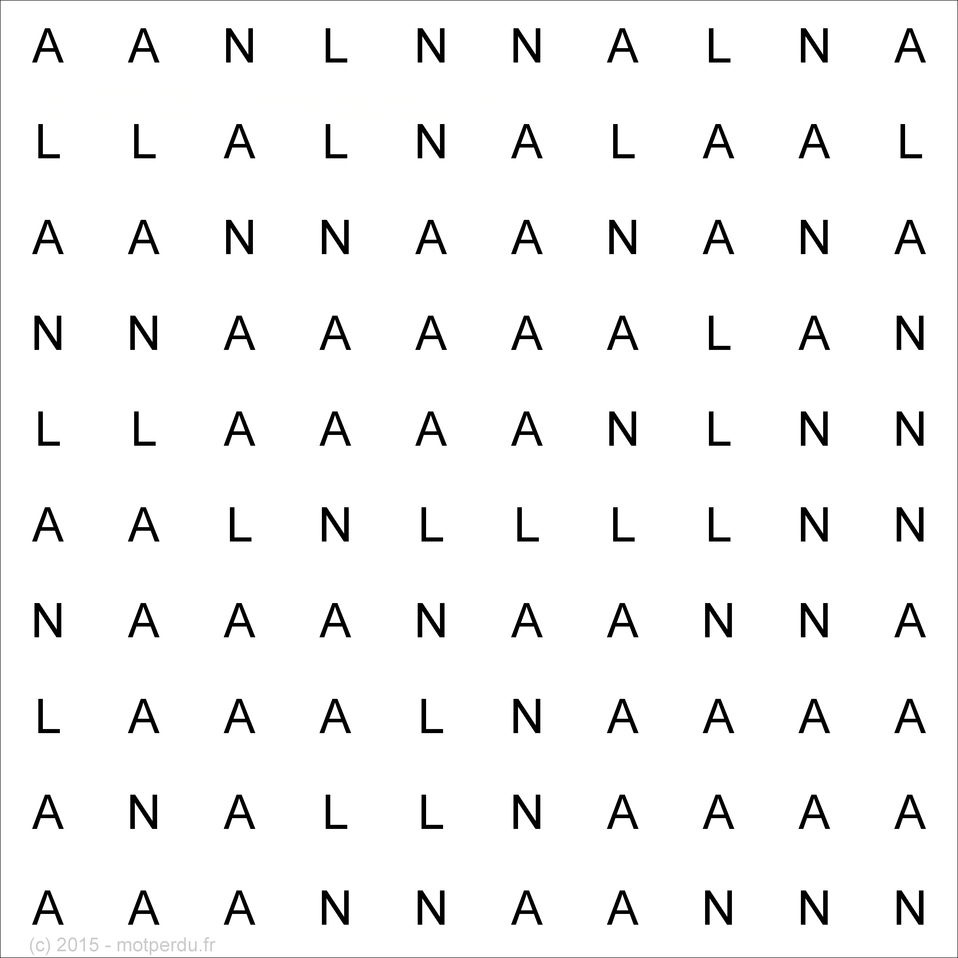 La grille ci-dessous contient une et une seule fois le mot LANA. A vous de jouer !