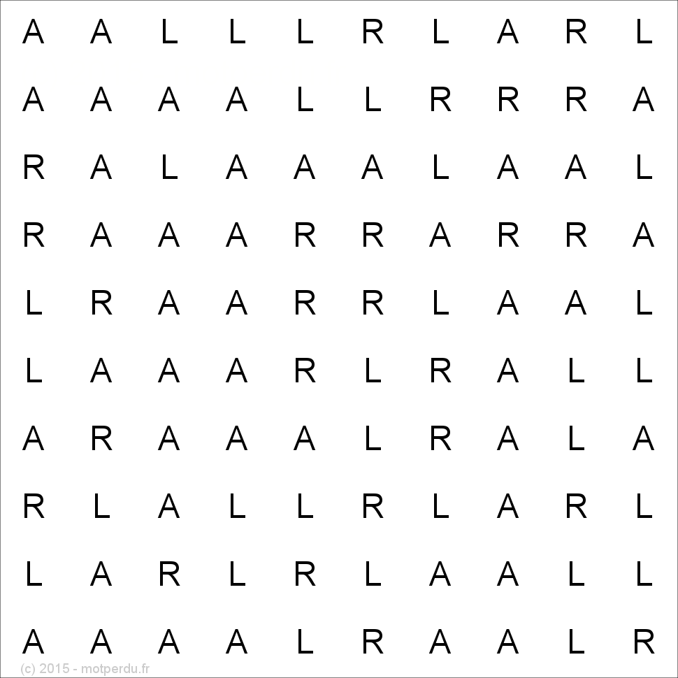 La grille ci-dessous contient une et une seule fois le mot LARA. A vous de jouer !