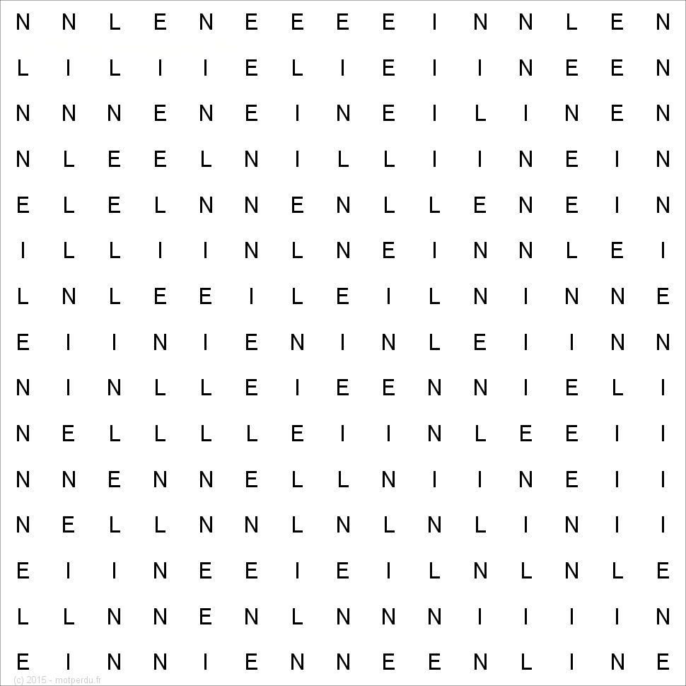 La grille ci-dessous contient une et une seule fois le mot LENI. A vous de jouer !