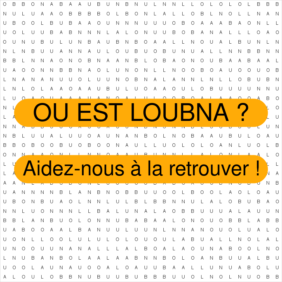 La grille ci-dessous contient une et une seule fois le mot LOUBNA. A vous de jouer !