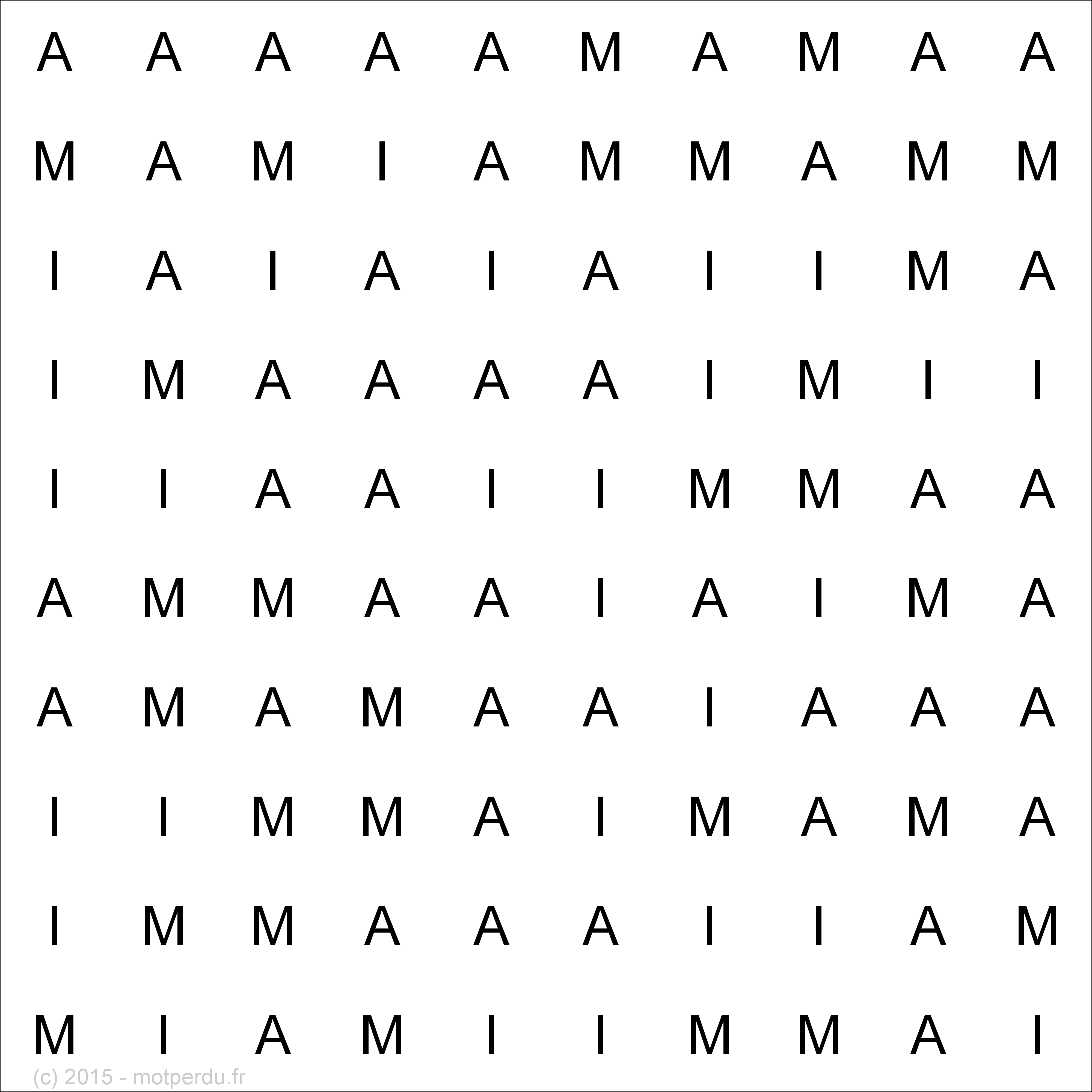 La grille ci-dessous contient une et une seule fois le mot MAIA. A vous de jouer !