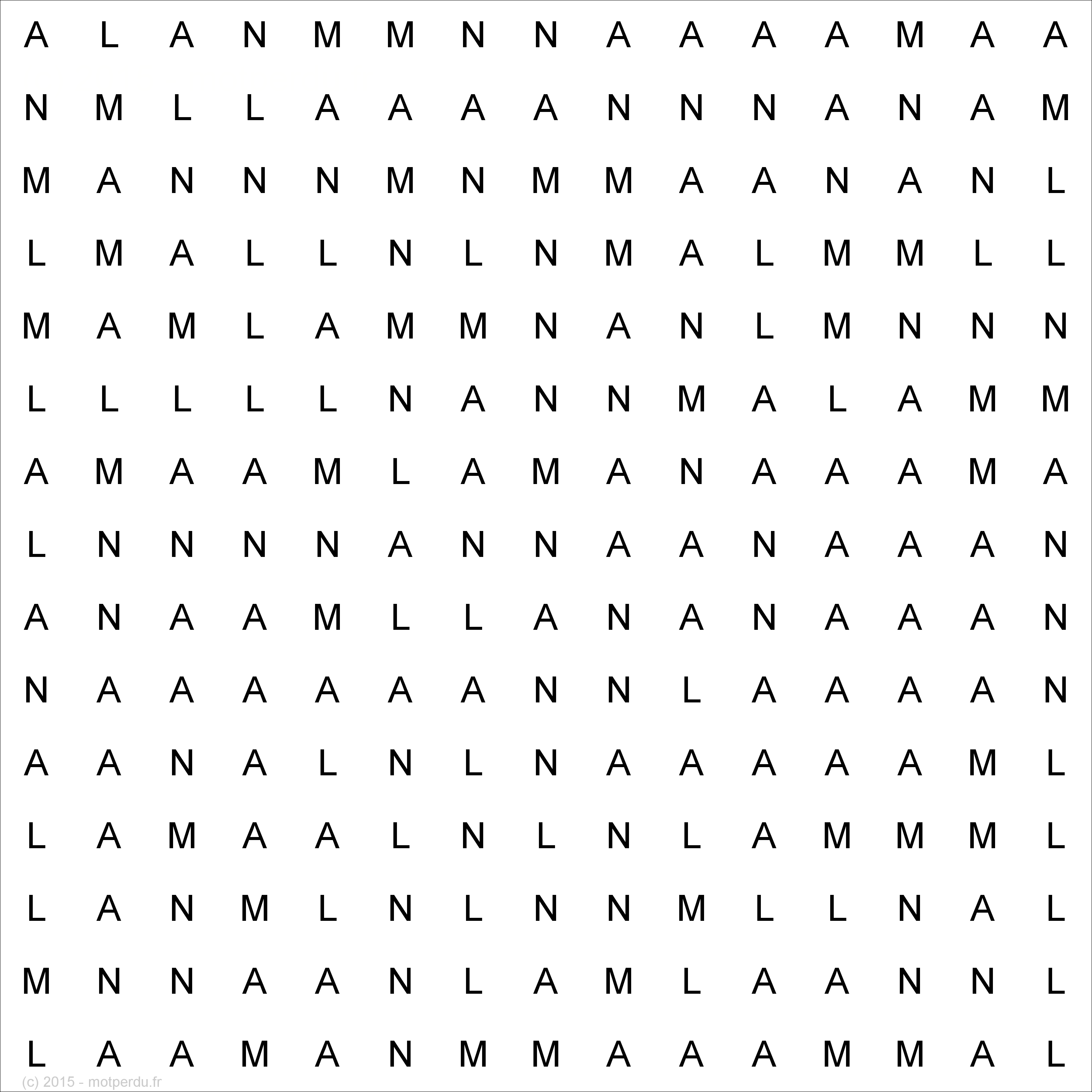 La grille ci-dessous contient une et une seule fois le mot MANAL. A vous de jouer !