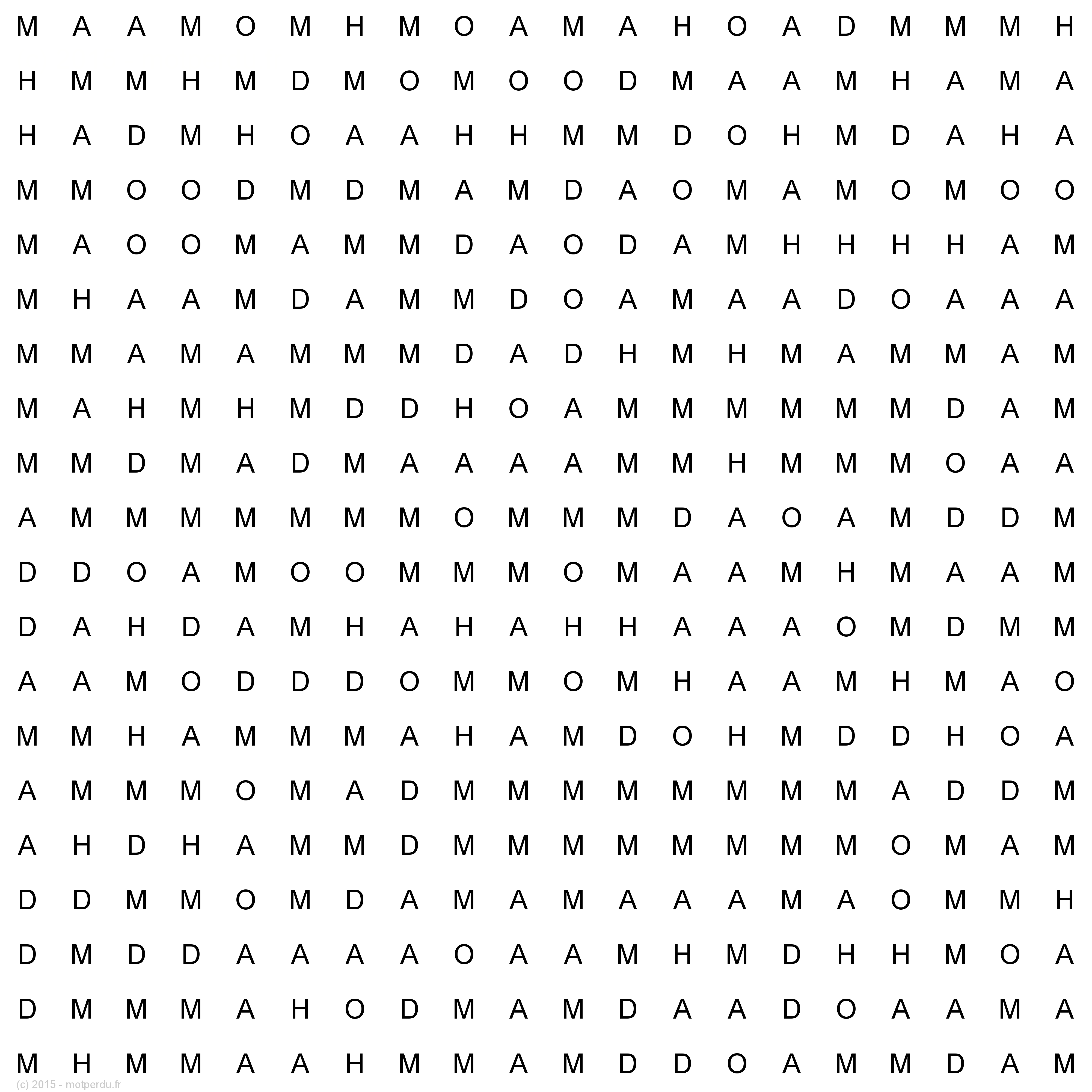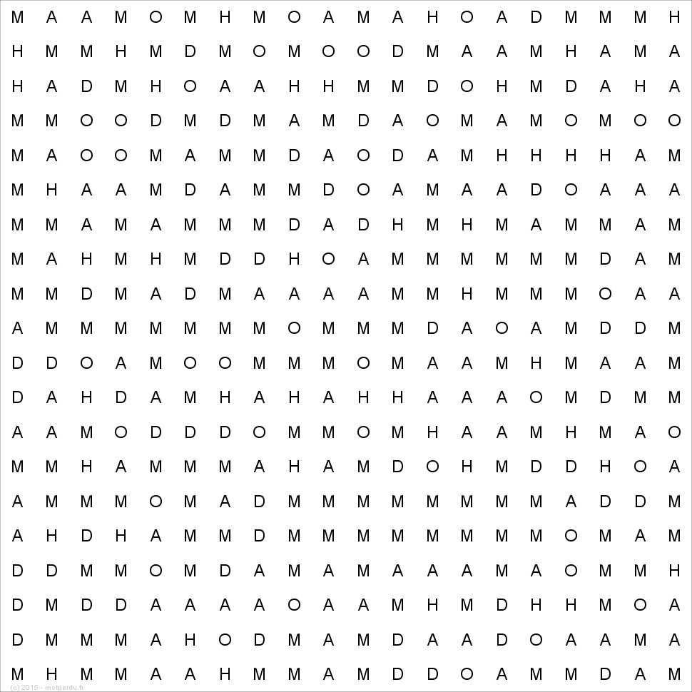 La grille ci-dessous contient une et une seule fois le mot MOHAMMAD. A vous de jouer !