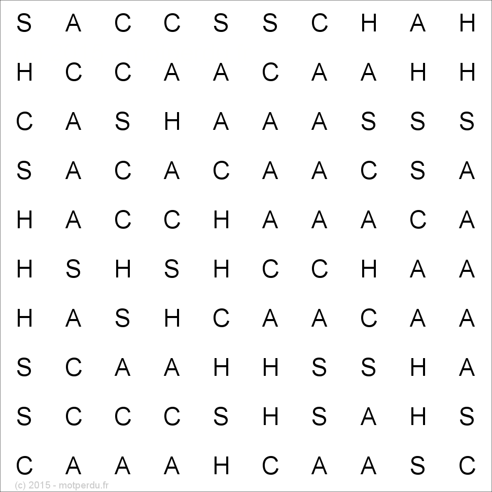 La grille ci-dessous contient une et une seule fois le mot SACHA. A vous de jouer !