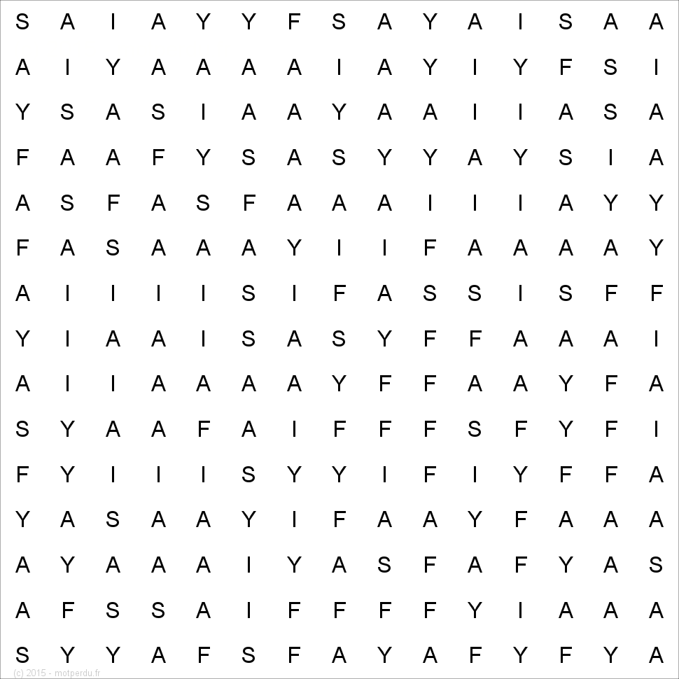 La grille ci-dessous contient une et une seule fois le mot SAFIYA. A vous de jouer !