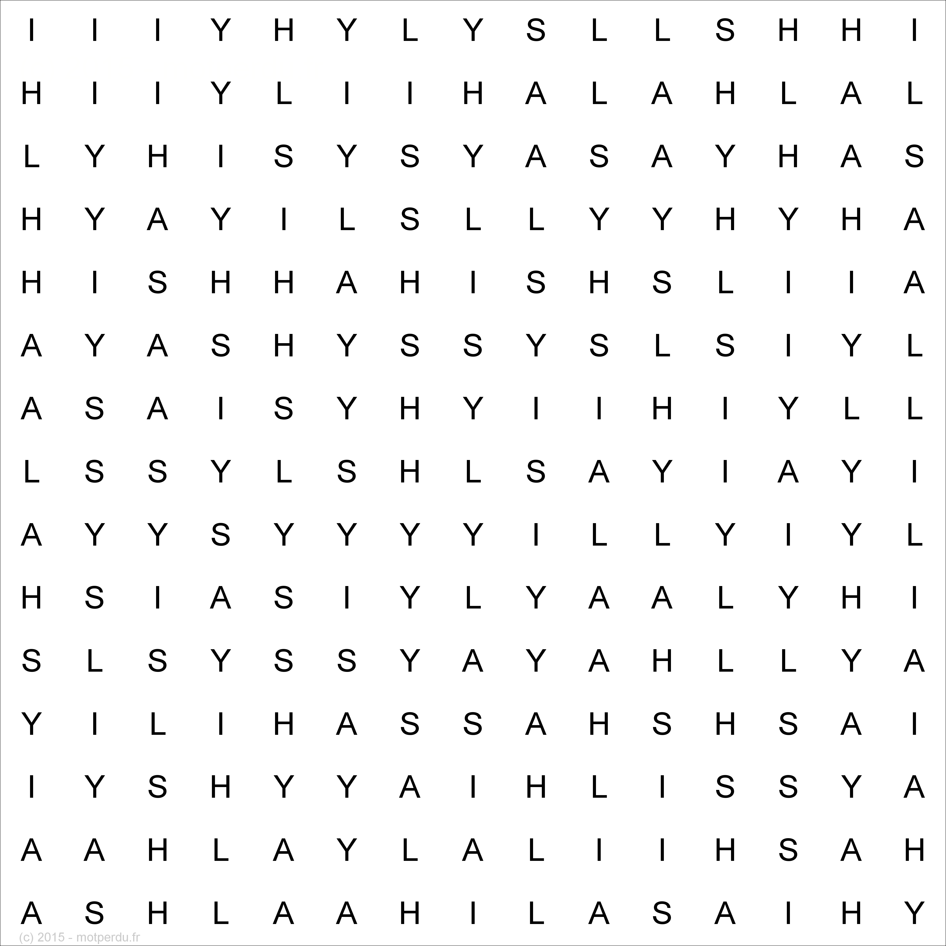 La grille ci-dessous contient une et une seule fois le mot SHAILY. A vous de jouer !