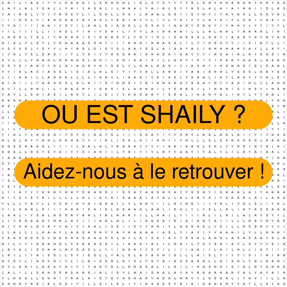 La grille ci-dessous contient une et une seule fois le mot SHAILY. A vous de jouer !