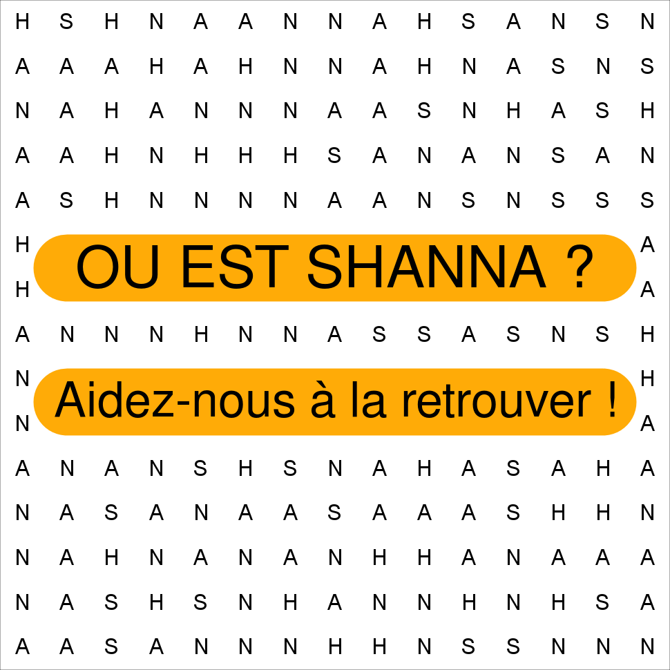 SHANNA s'est perdue parmi les lettres A H N S, pouvez-vous la retrouver ?