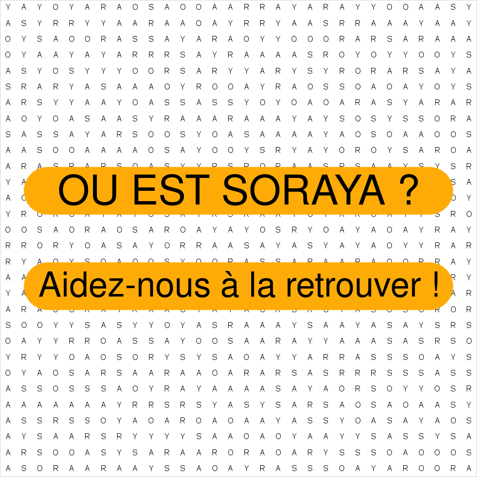La grille ci-dessous contient une et une seule fois le mot SORAYA. A vous de jouer !