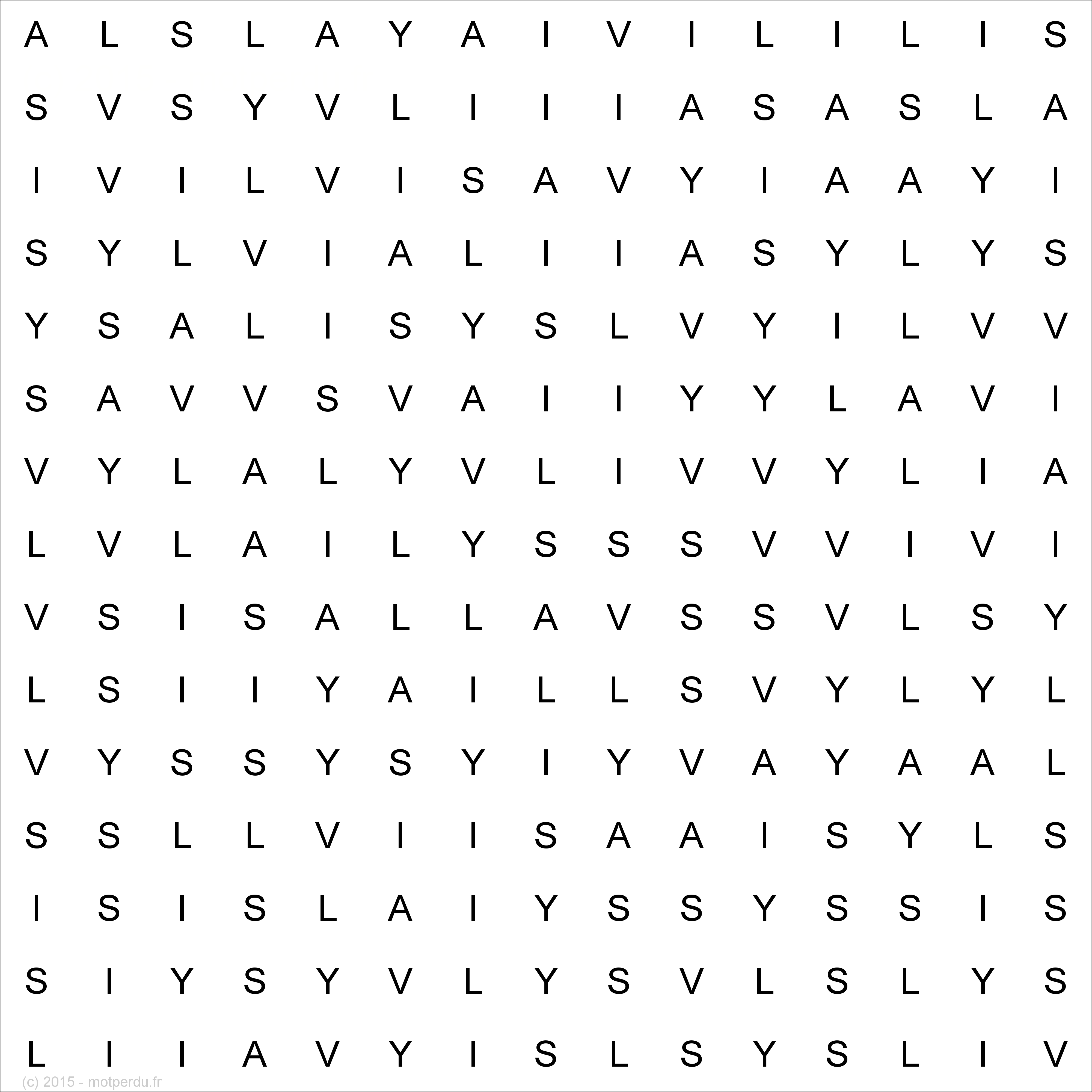 La grille ci-dessous contient une et une seule fois le mot SYLVIA. A vous de jouer !