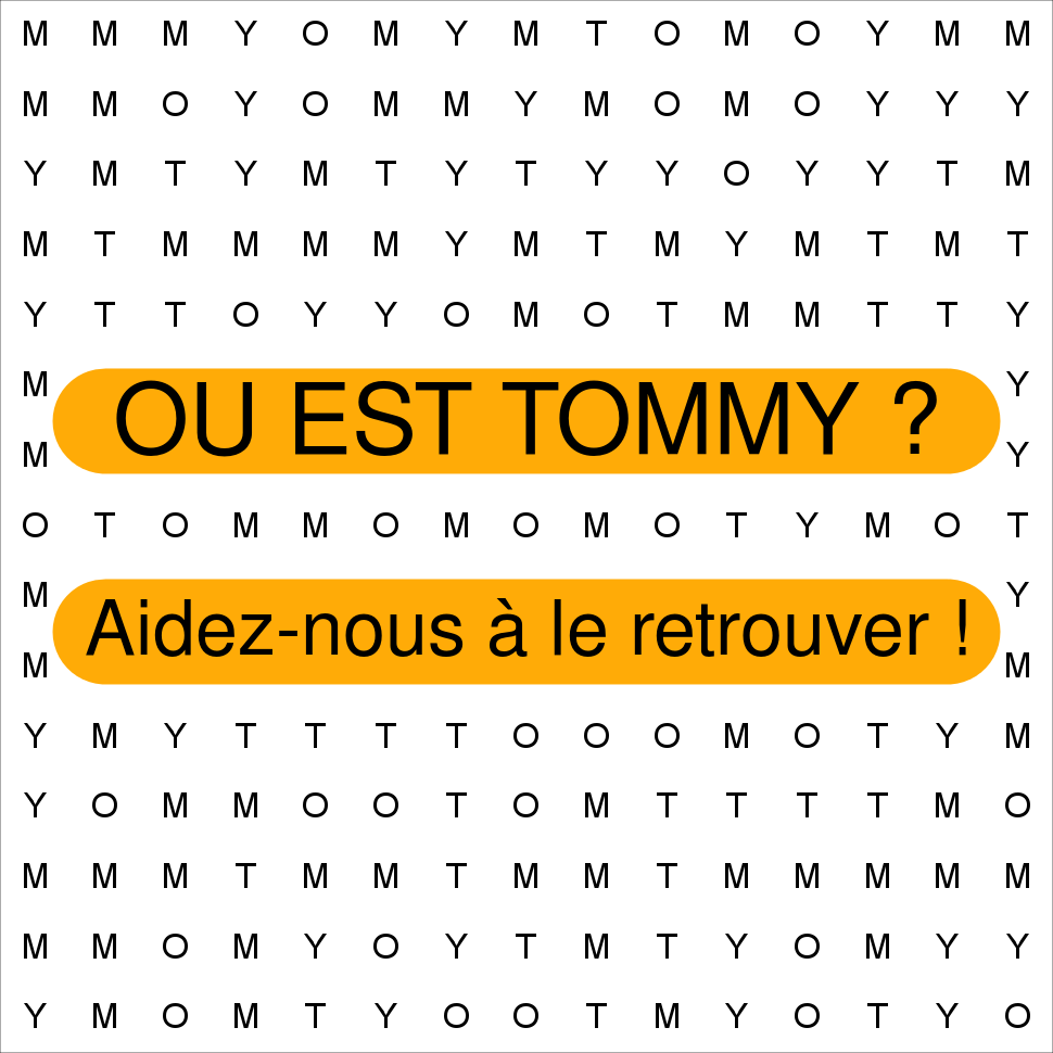 TOMMY s'est perdu parmi les lettres M O T Y, pouvez-vous le retrouver ?